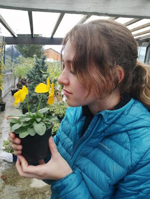 Élève au Lycée Horticole de - COSTA de BEAUREGARD - Campus du Bocage -,Louanne, est donc en stage en alternance à Aime, dans les serres de l’entreprise « FLEURI JARDIN » une production locale de France Delsupehe. C’est sur ces versants que naissent et s’épanouissent les plants et fleurs les pensées, les cyclamens, des compositions florales, mais aussi des graminées le tout entouré d’arbres fruitiers et autres dans la diversité. »